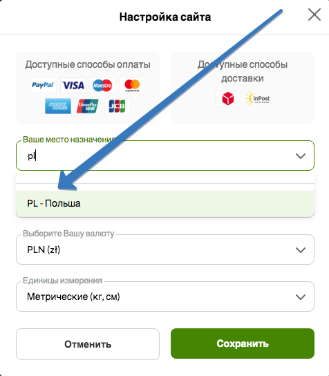 3) При оформлении заказа добавляем новый адрес, который указан в личном кабинете, раздел «Доставка из Польши»